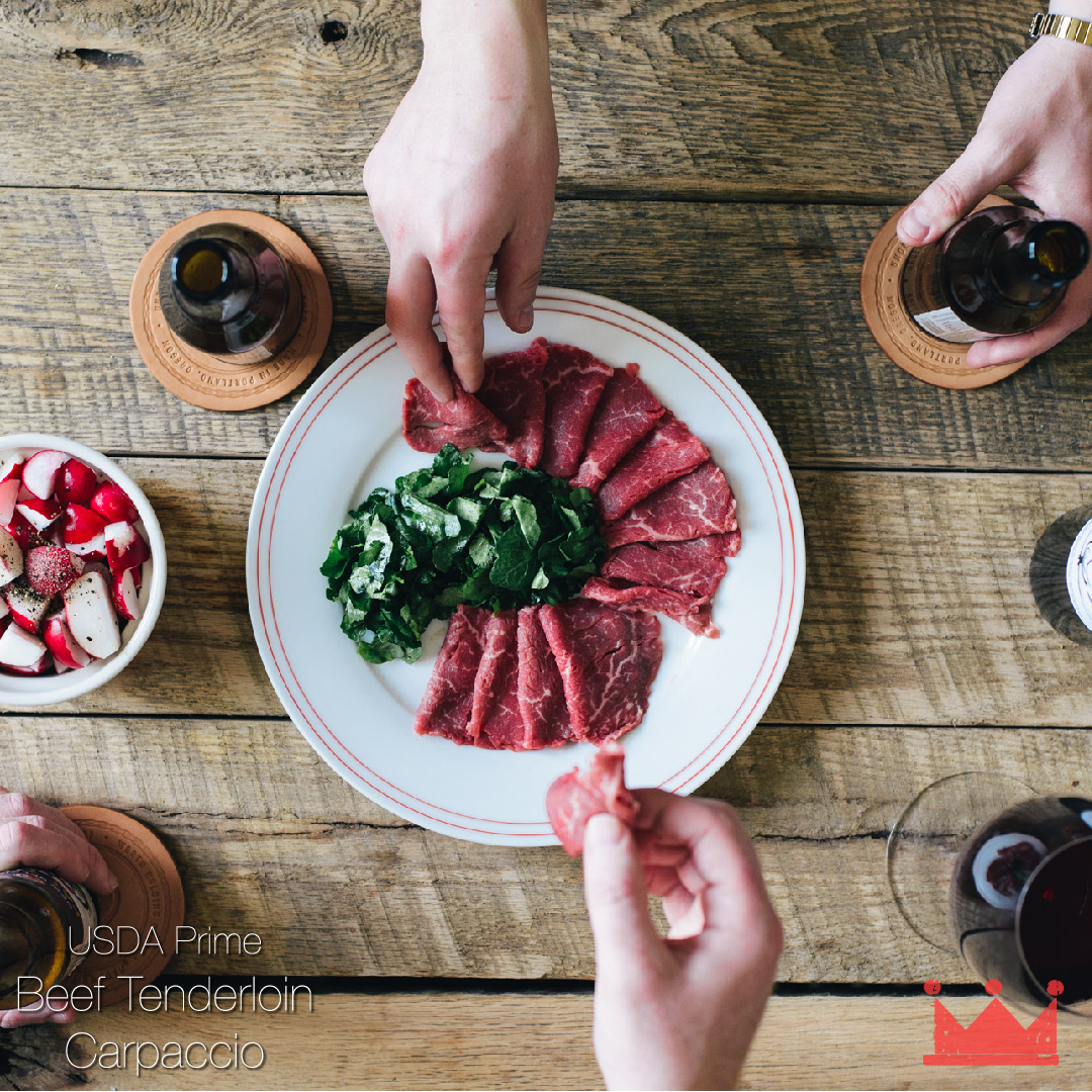 Today, this simple yet succulent specialty is a refined showcase for the true flavor of the beef. PMC’s carpaccio cut beef tenderloin arrives to fresh and ready for the plate. Check out the carpaccio along with our other Valentine’s Day specials.